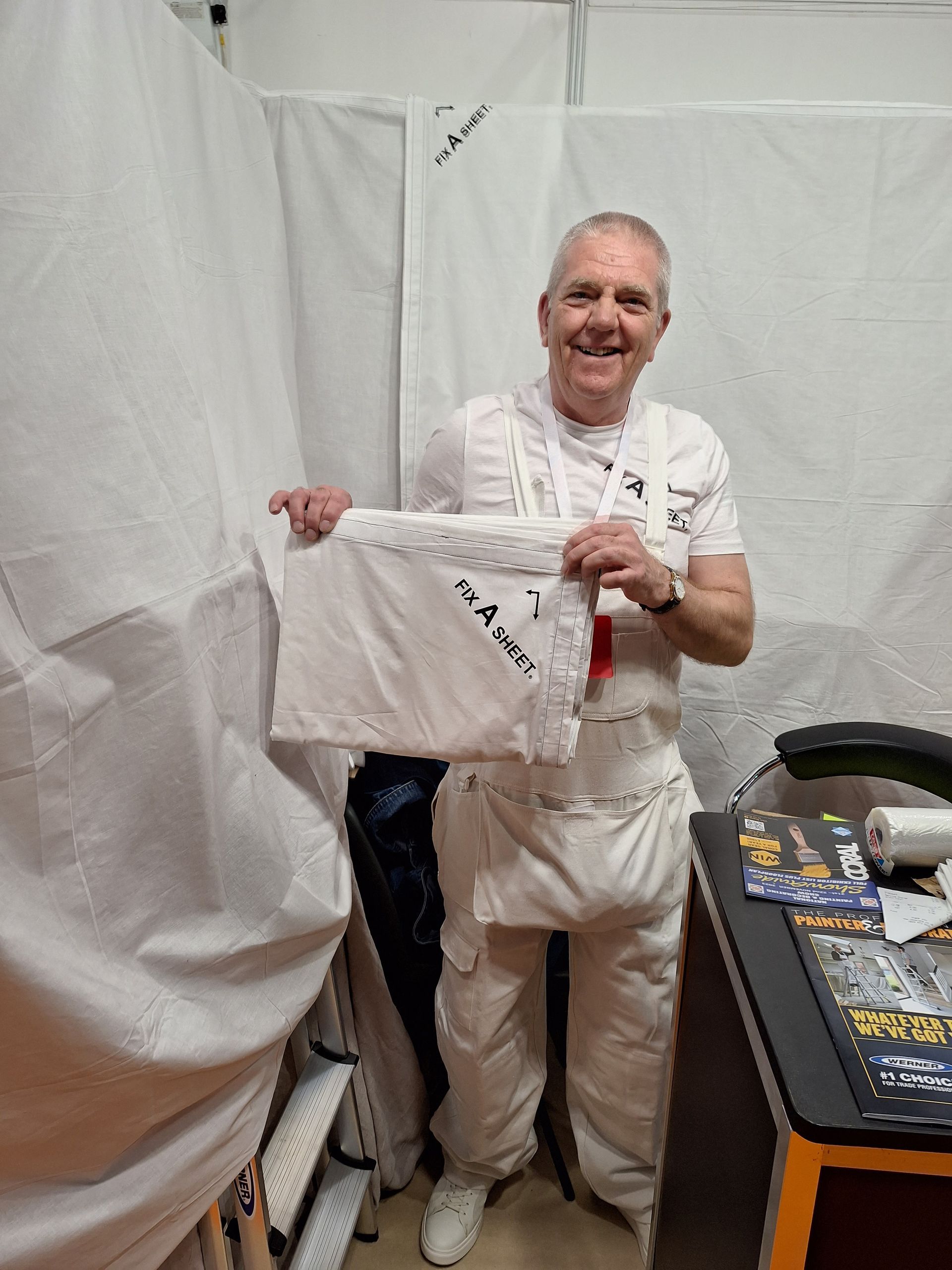 My name is Darren Symonds, I am a painter & decorator, I have been doing this job for over 30 years, after years of struggling to sheet up when decorating kitchens etc & feeling terribly guilty when throwing away so much plastic to landfill, I designed FIX A SHEET & started selling them, launching at the ‘2023 Paint Show’. You can see an interview I had with Phil Beckwith at the show by following the link below.